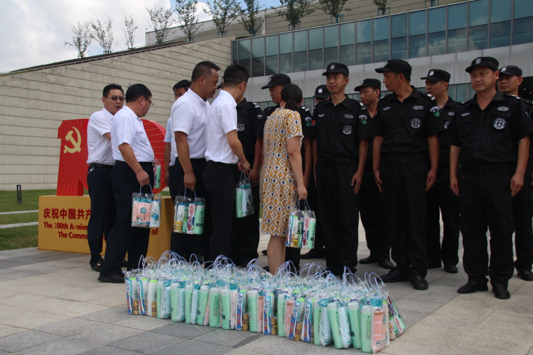 夏日炎炎,为进一步做好暑期安全生产、有效预防控制高温天气引发的各类安全隐患和中暑事件,切实做好防暑降温工作,确保广大员工的身心健康,让员工全身心投入工作和愉快的生活。 近日,集团公司党支部书记、董事长江吟,副书记、副总裁蔡勇,党建办主任、工会主席杨永泉带队,分别赴闵行两馆、春申文化广场等地基层一线开展送清凉慰问活动,向坚守在烈日骄阳下的保安队员表示亲切慰问,送去夏季防暑降温慰问物品,带去了工会组织对基层一线职工的深切关怀。
