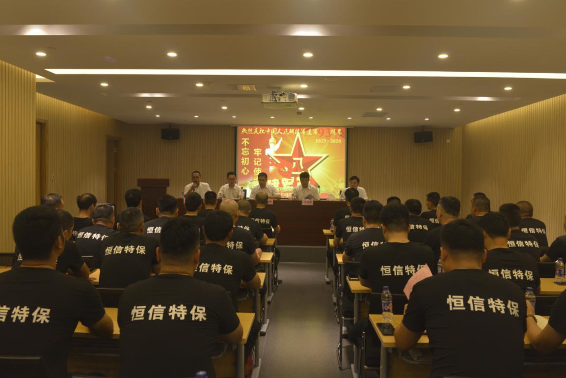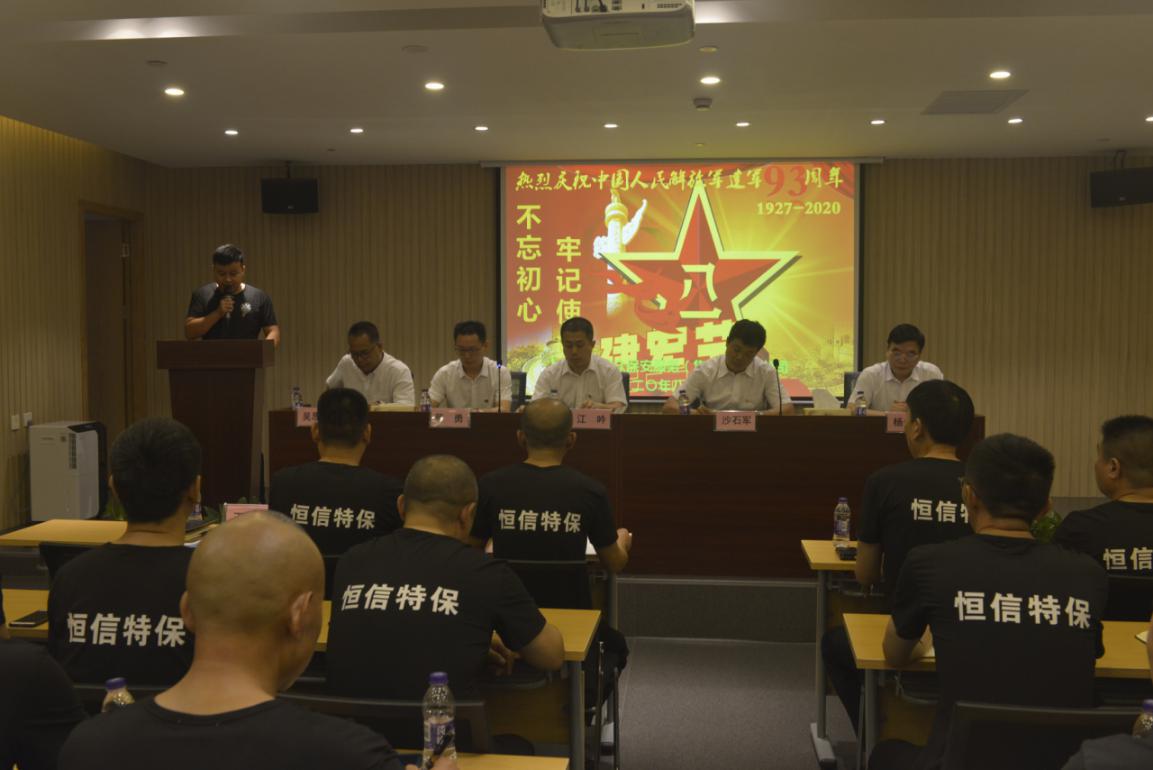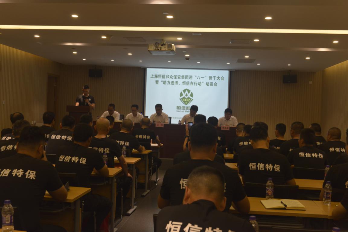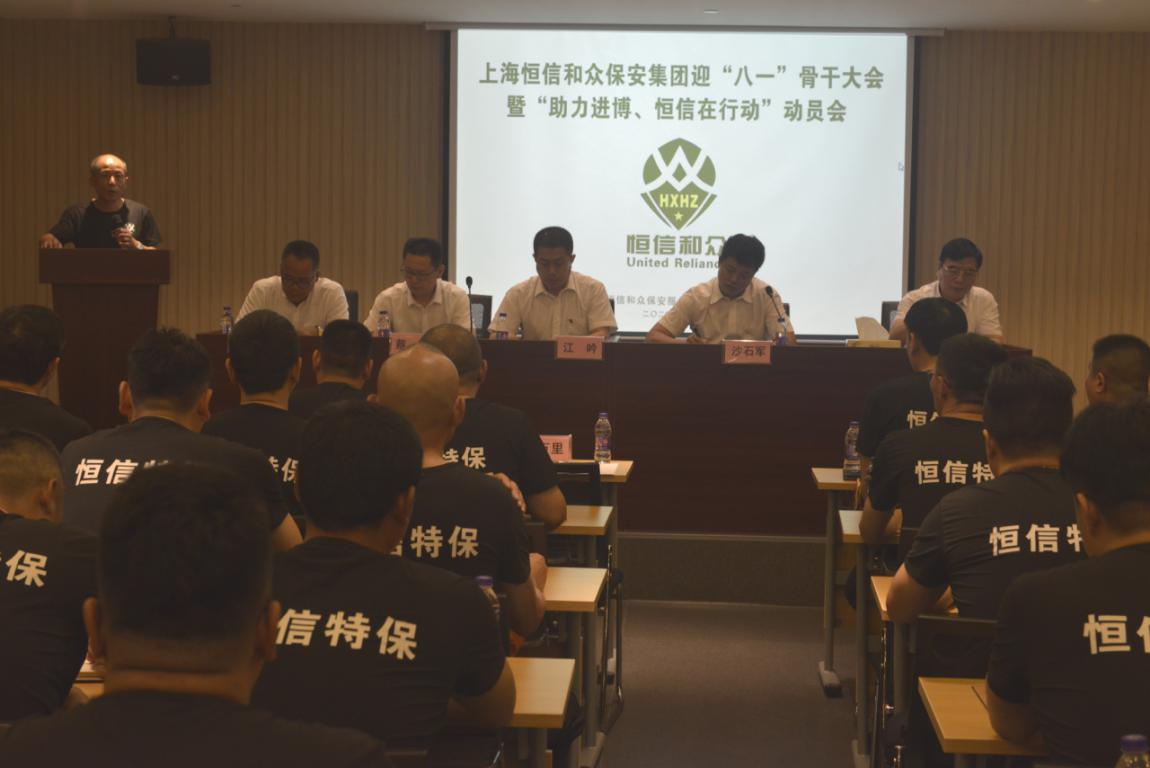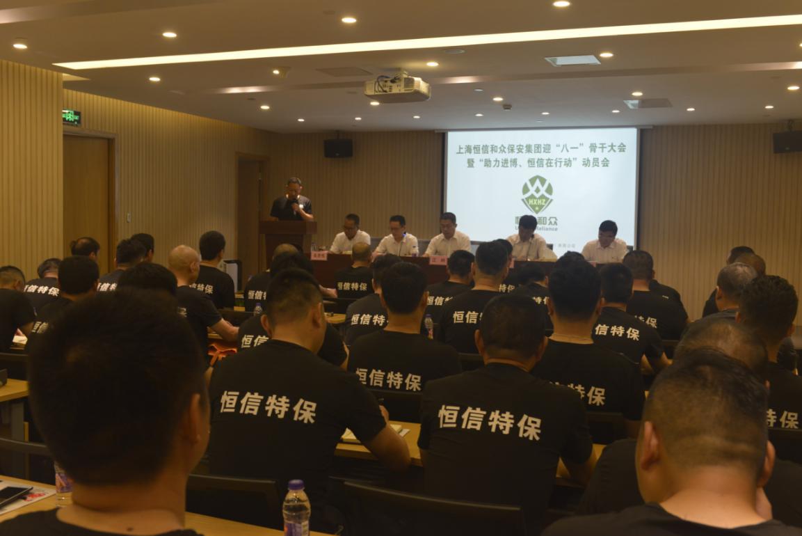 2020年8月1日上午,上海恒信和众保安服务(集团)有限公司在闵行区文化公园会议中心召开迎“八一”集团骨干大会暨“助力进博,恒信在行动”动员会。集团党支部、各职能部门、重点项目负责人及集团党员代表、复员军人代表、集团骨干代表欢聚一堂,隆重纪念中国人民解放军建军93周年,共同祝贺恒信和众保安集团迈入高速发展的征程,自觉履行安保职能、牢记职责使命,做好第三届中国进口博览会安保服务总动员,共商集团化经营大计。