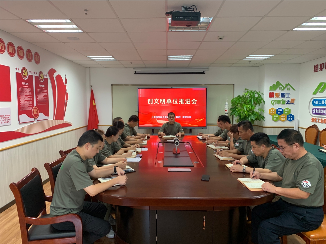 2023年9月25日上午,上海恒信和众保安集团召开创建文明单位工作推进会,集团董事长江吟、各小组负责人及行政管理人员共19人出席会议。