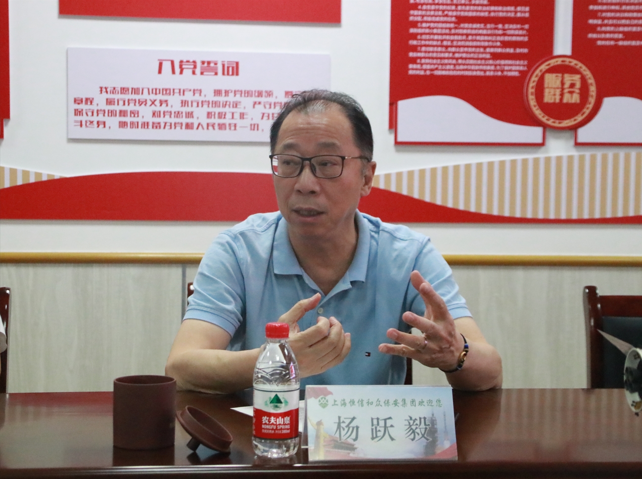 9月26日下午,上海市保安服务行业协会在恒信和众保安集团举行“中秋国庆同欢乐、携手奋进新时代”主题活动,协会秘书长杨跃毅出席,恒信和众保安集团、黎峰保安集团、宗保保安公司、东安保安公司领导参加,活动由协会办公室主任李国玉主持。